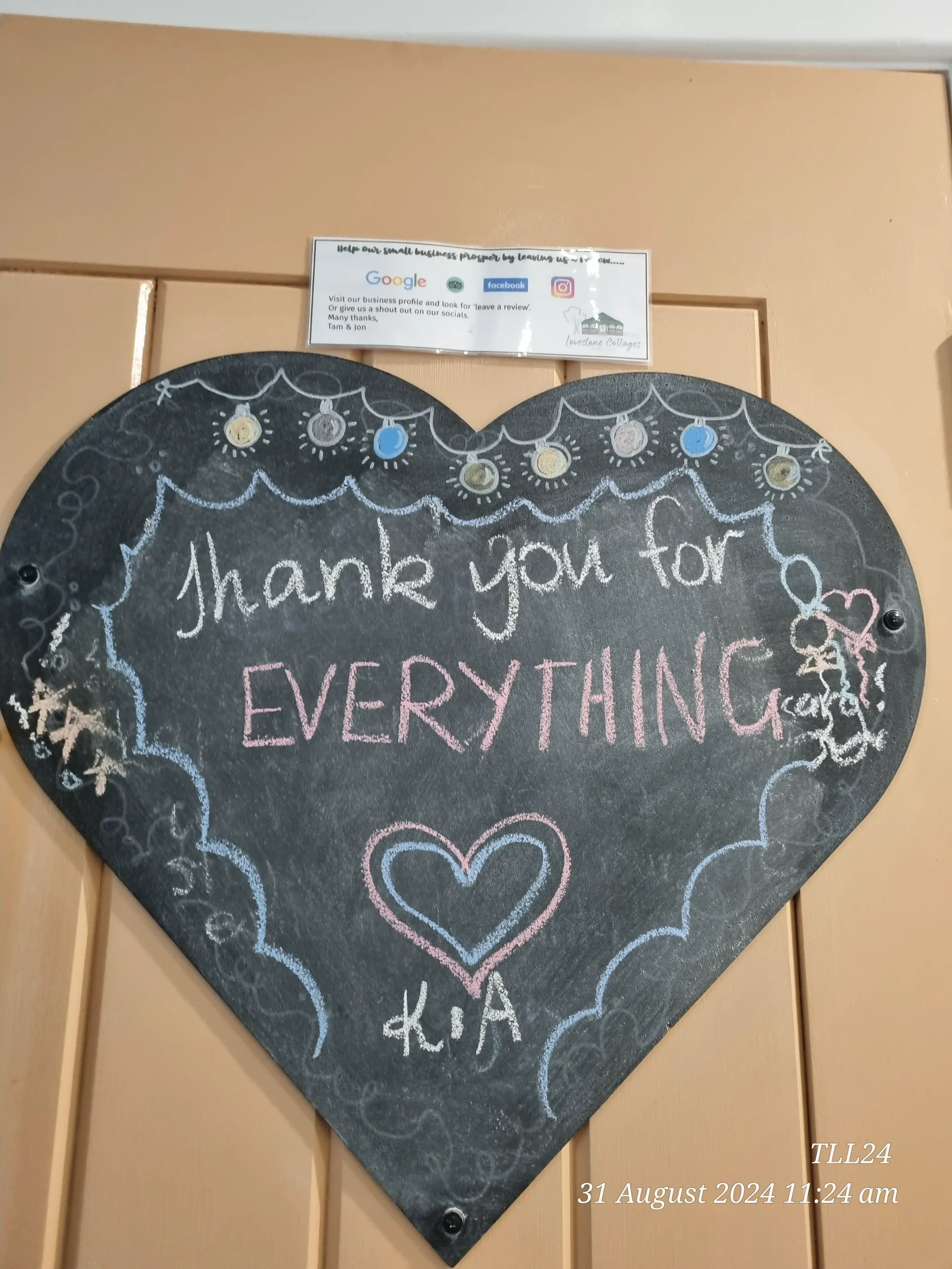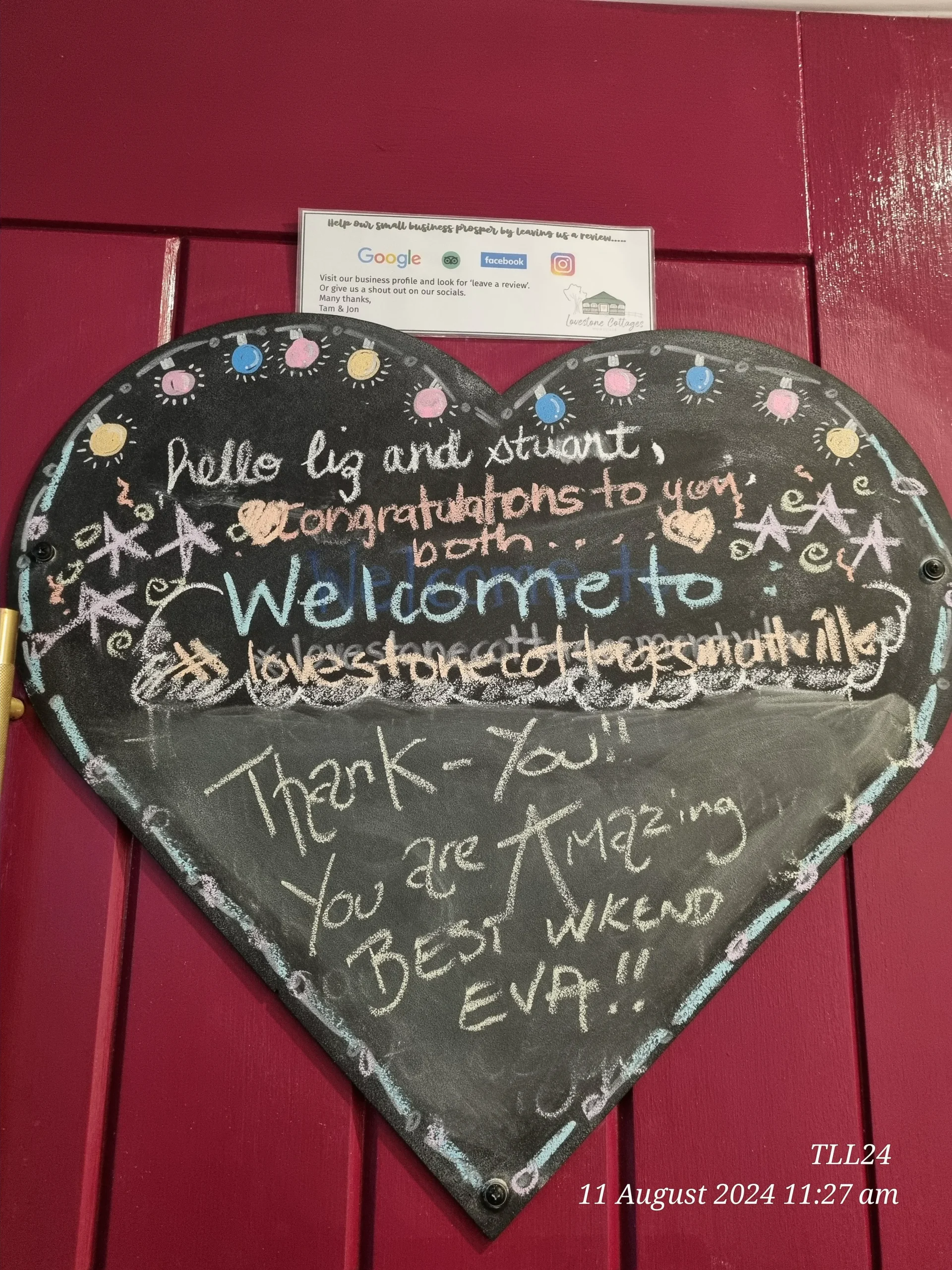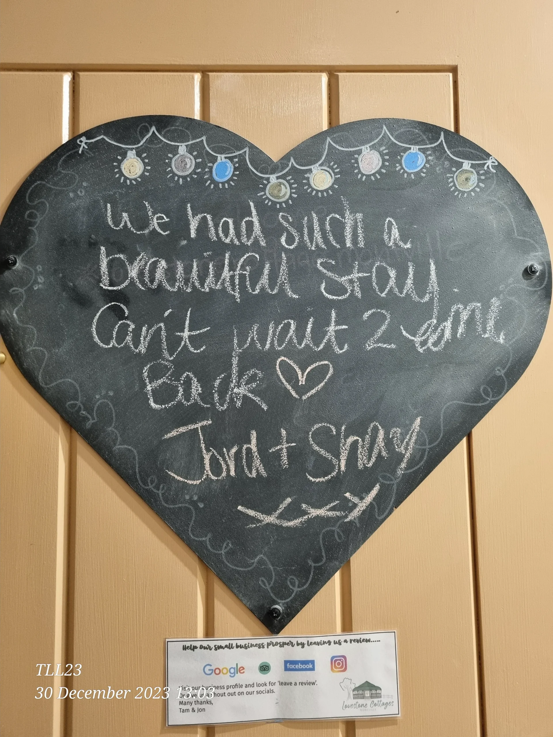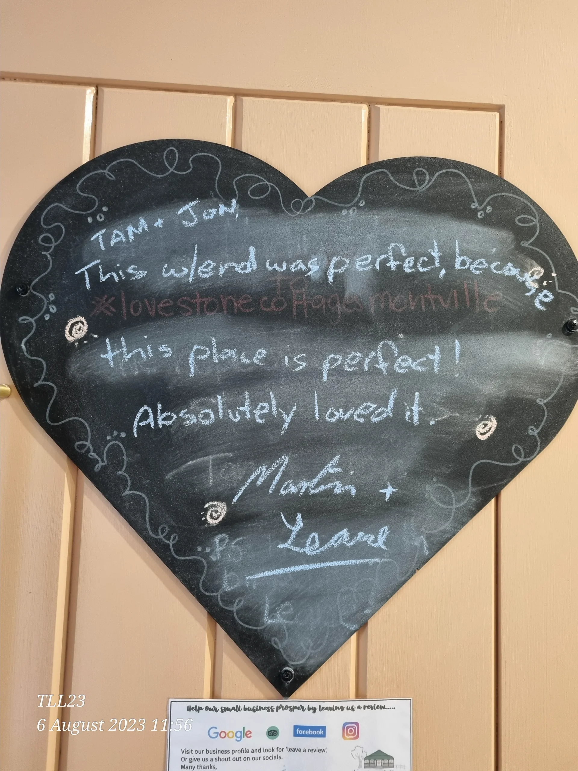Whilst we love 5 Star reviews many of our guests also like to leave us a LoveNote.