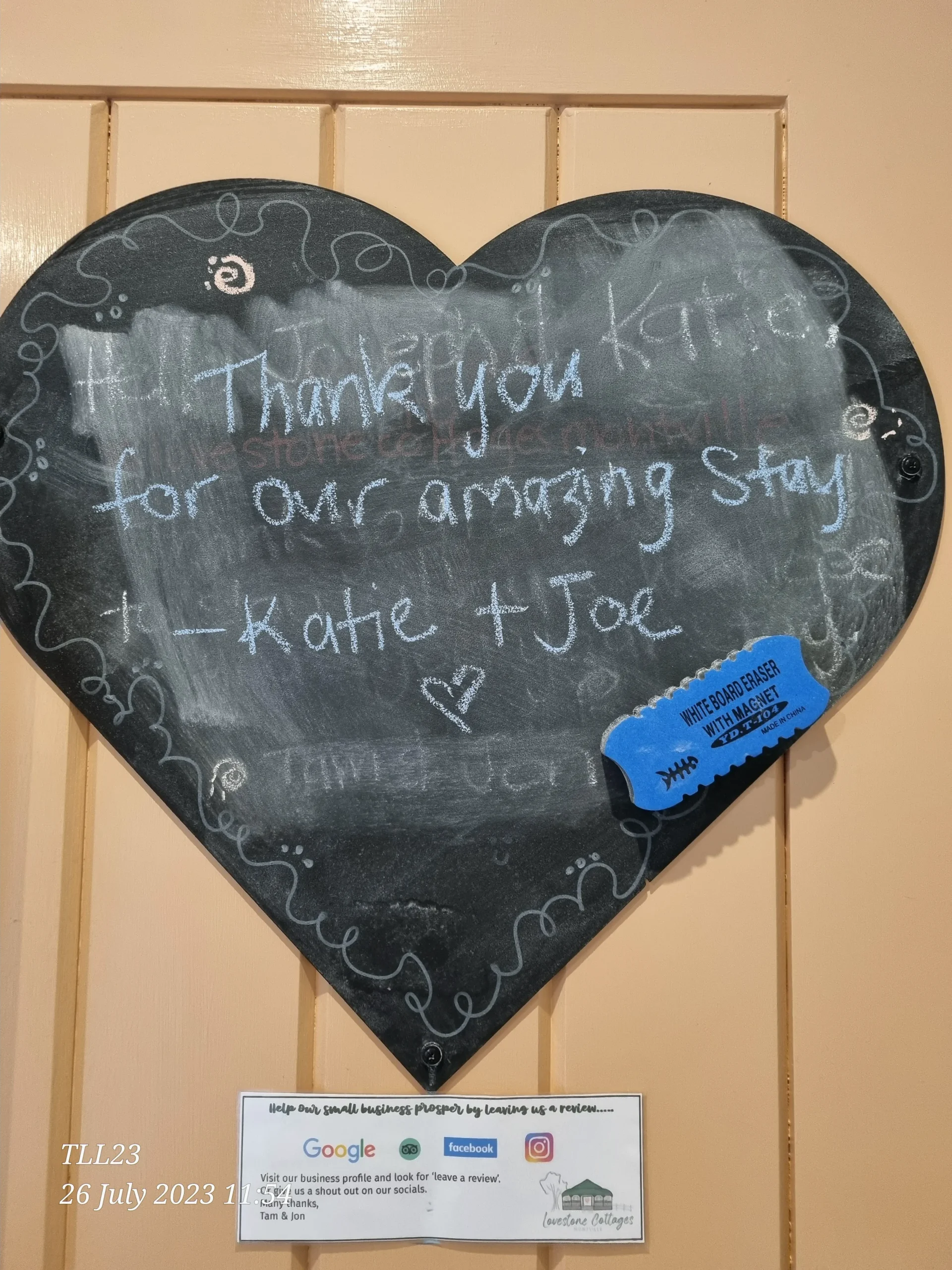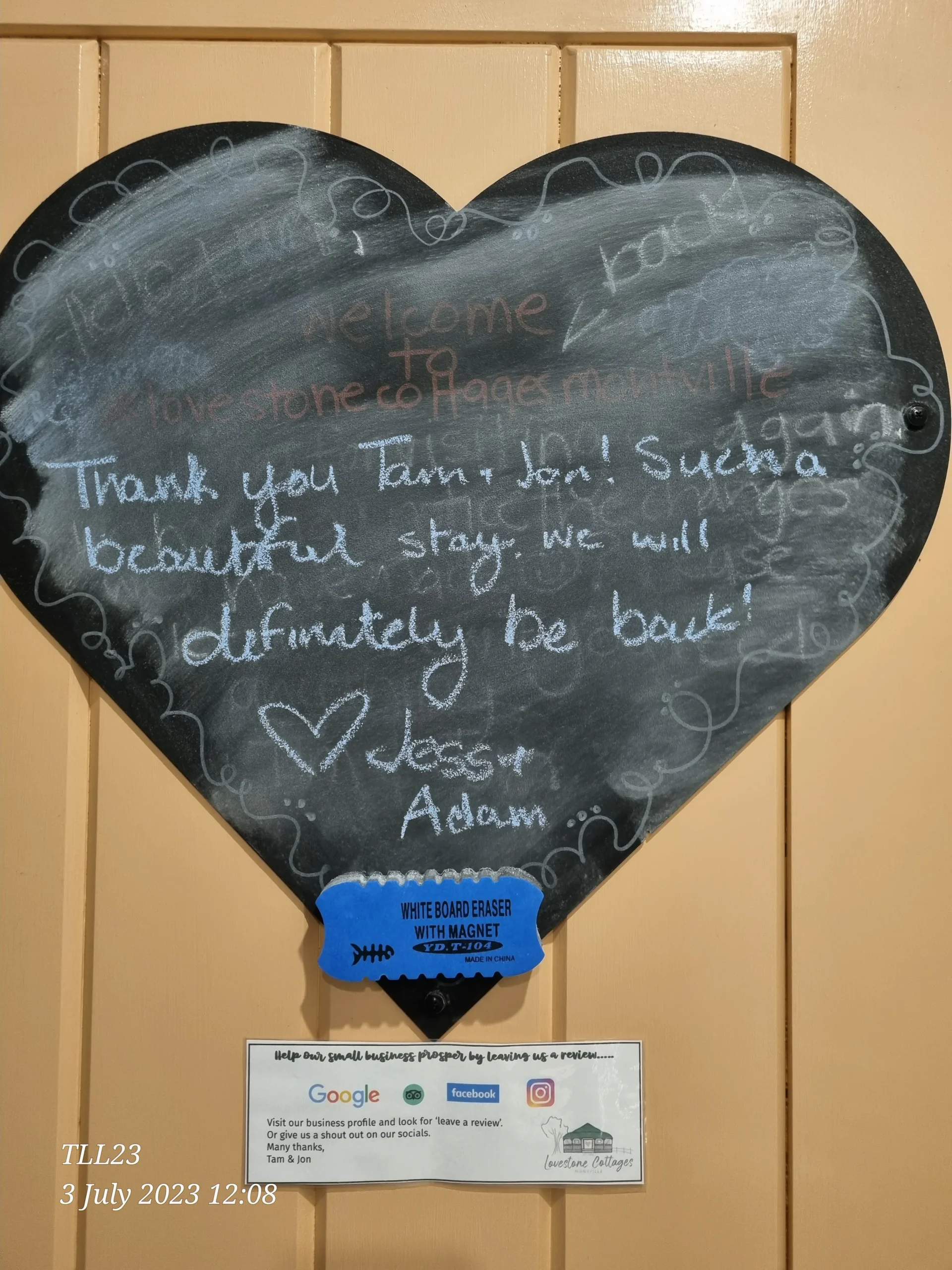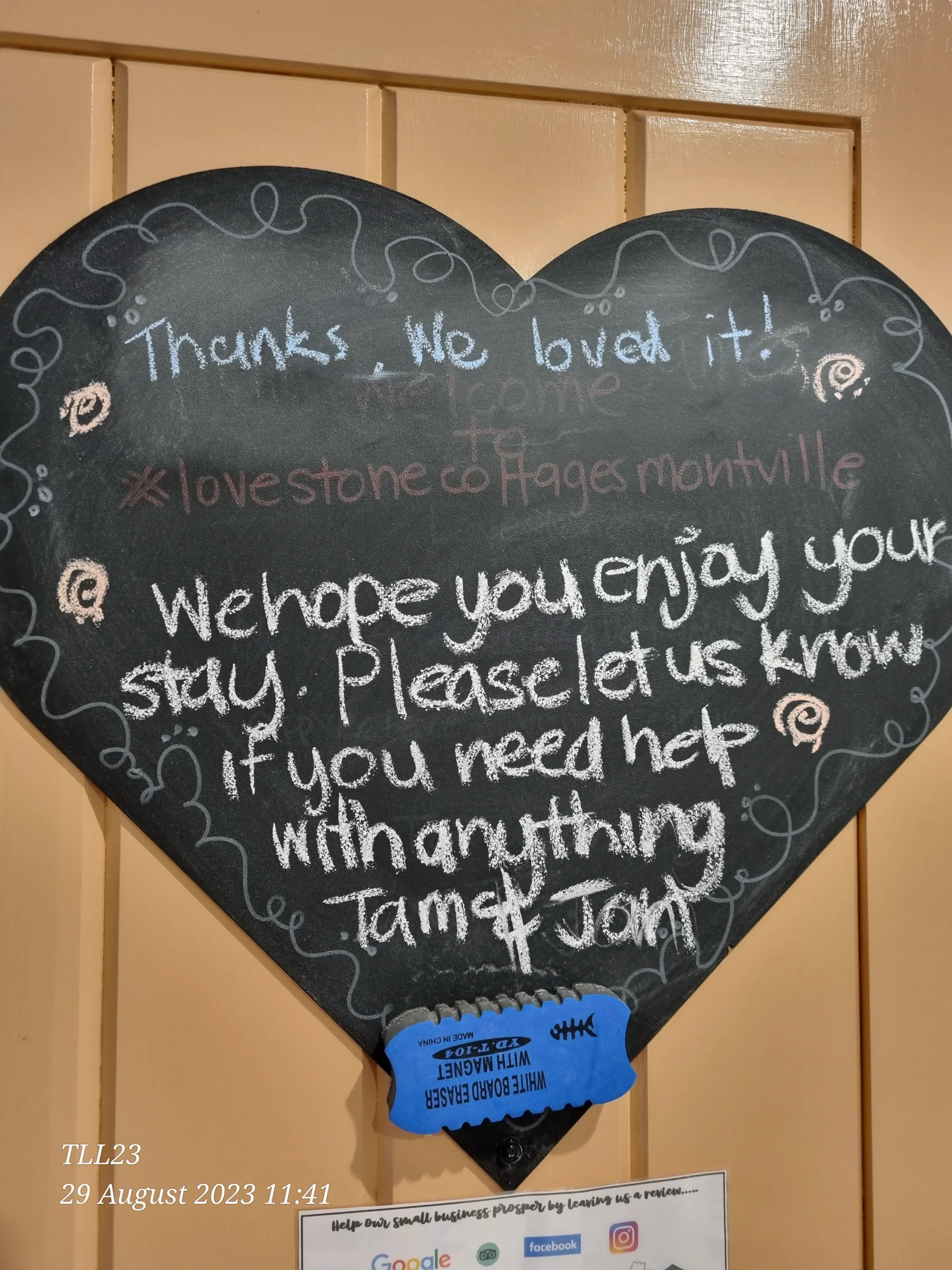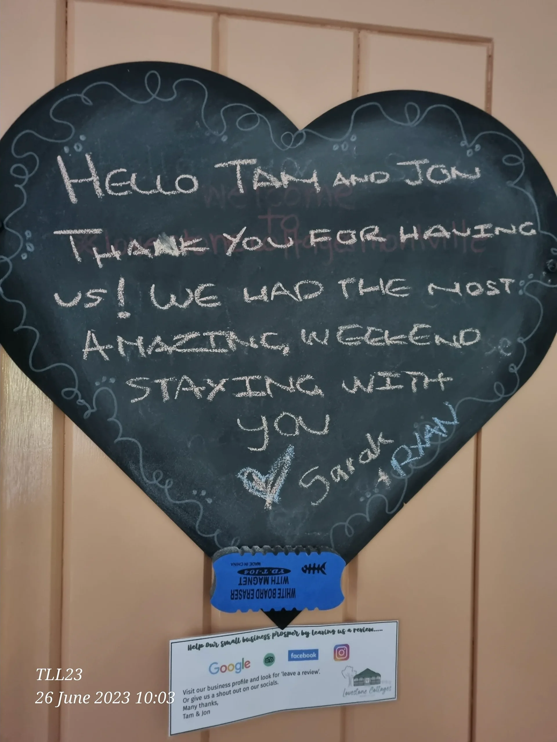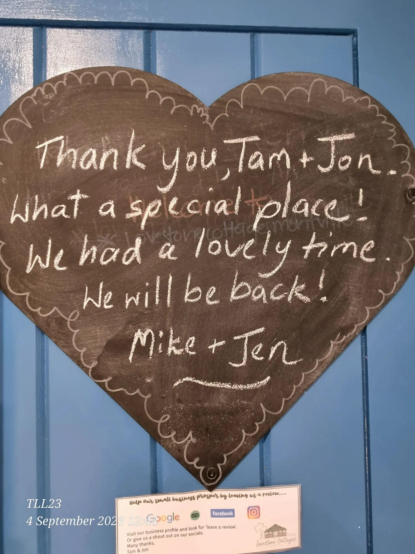 Whilst we love 5 Star reviews many of our guests also like to leave us a LoveNote.