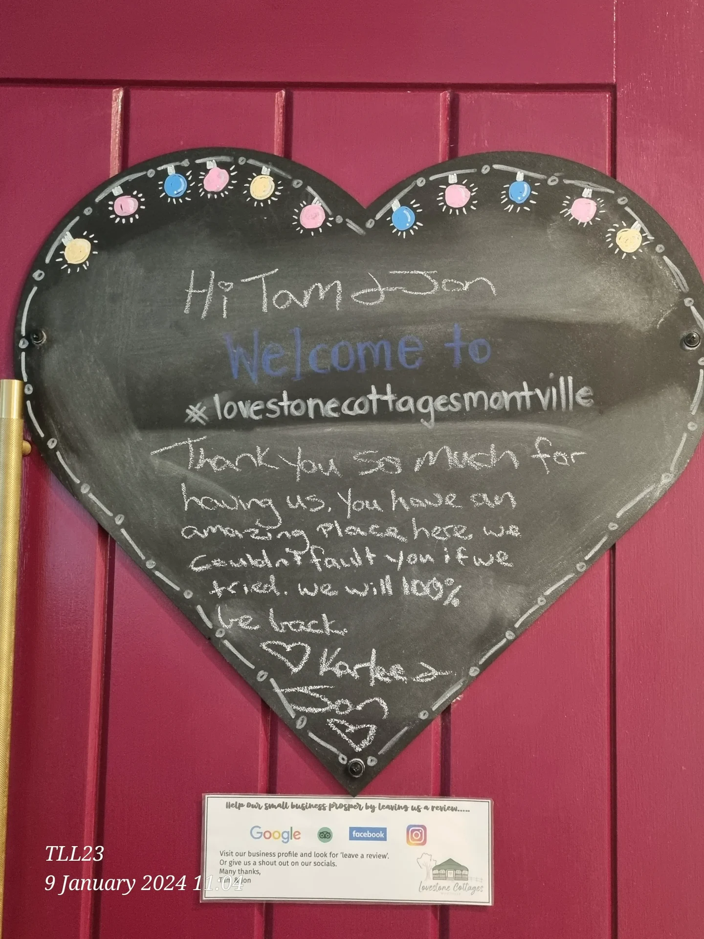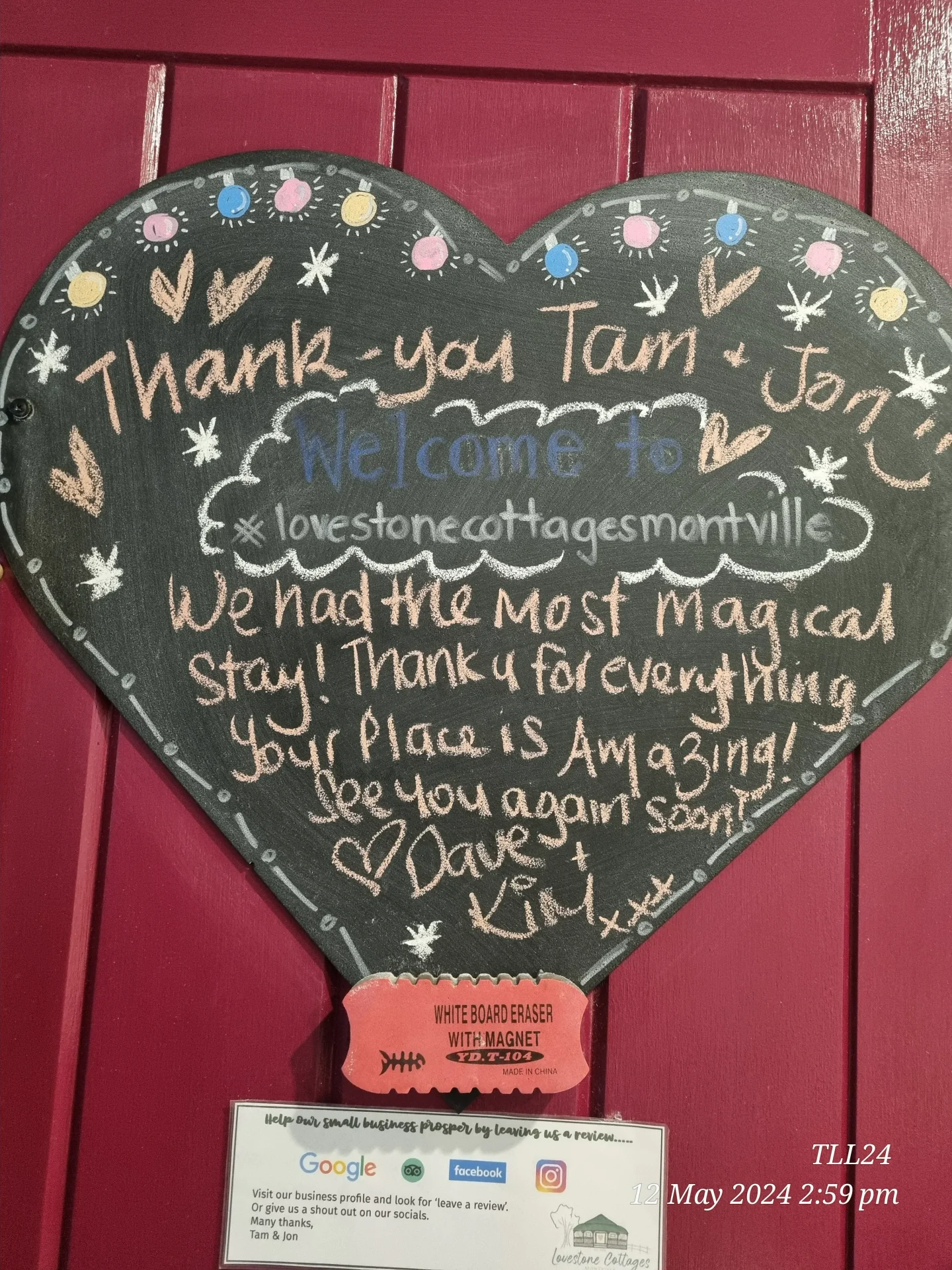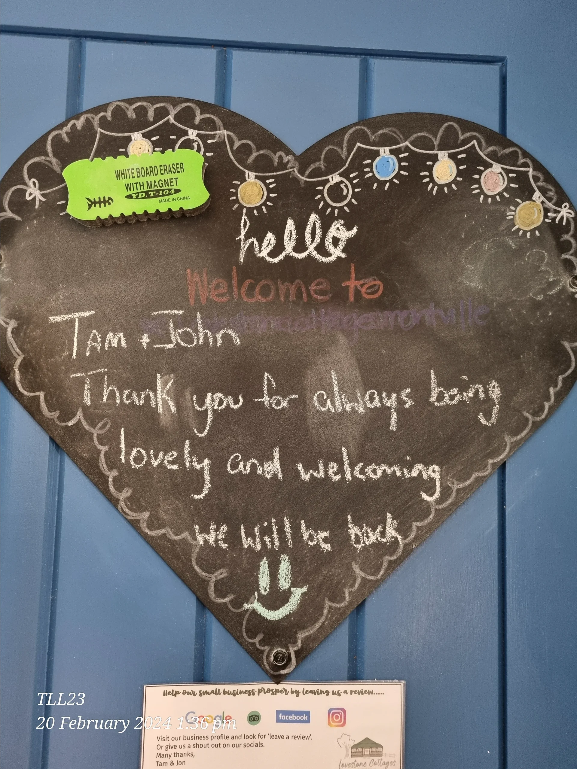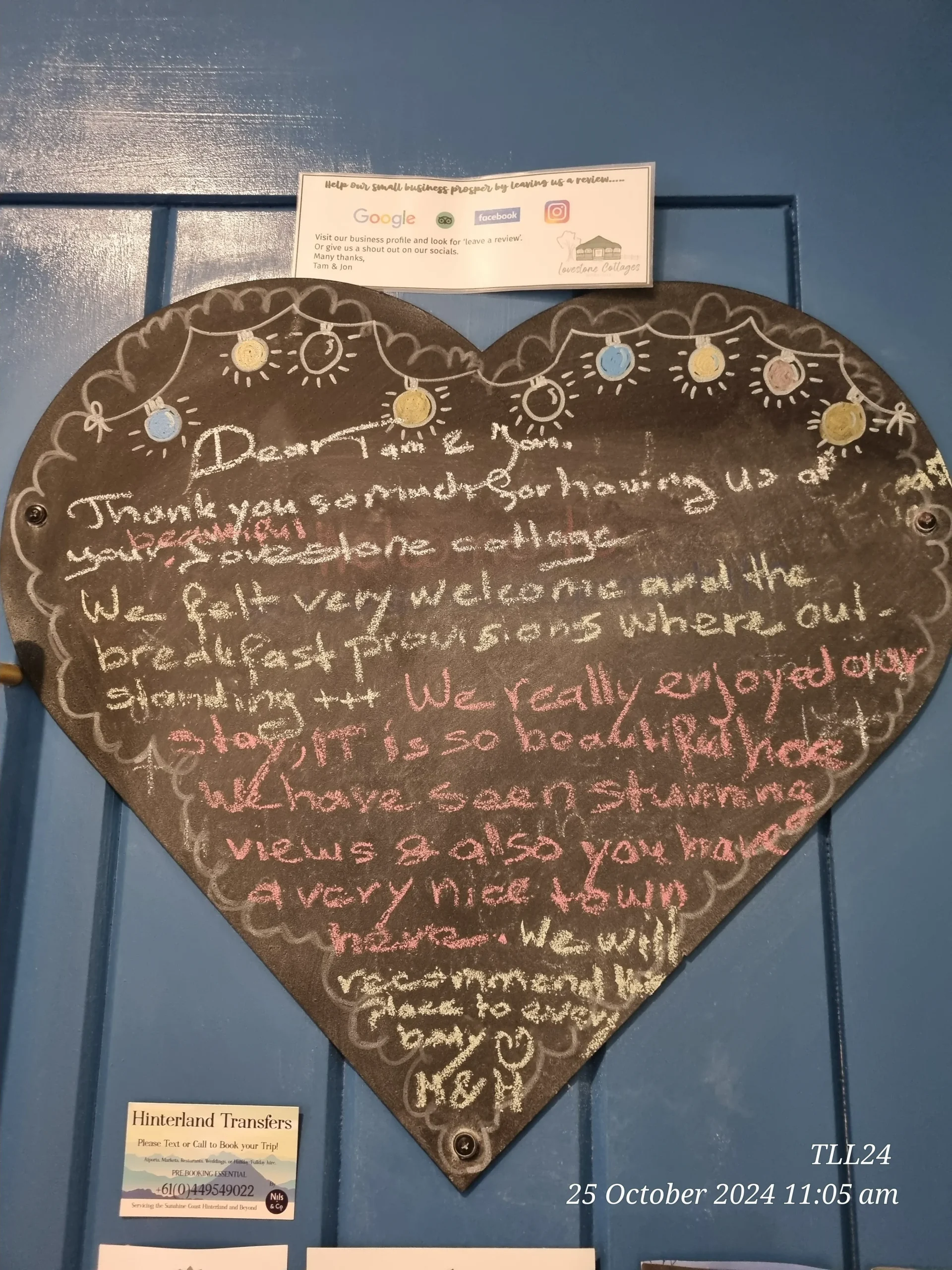 Whilst we love 5 Star reviews many of our guests also like to leave us a LoveNote.