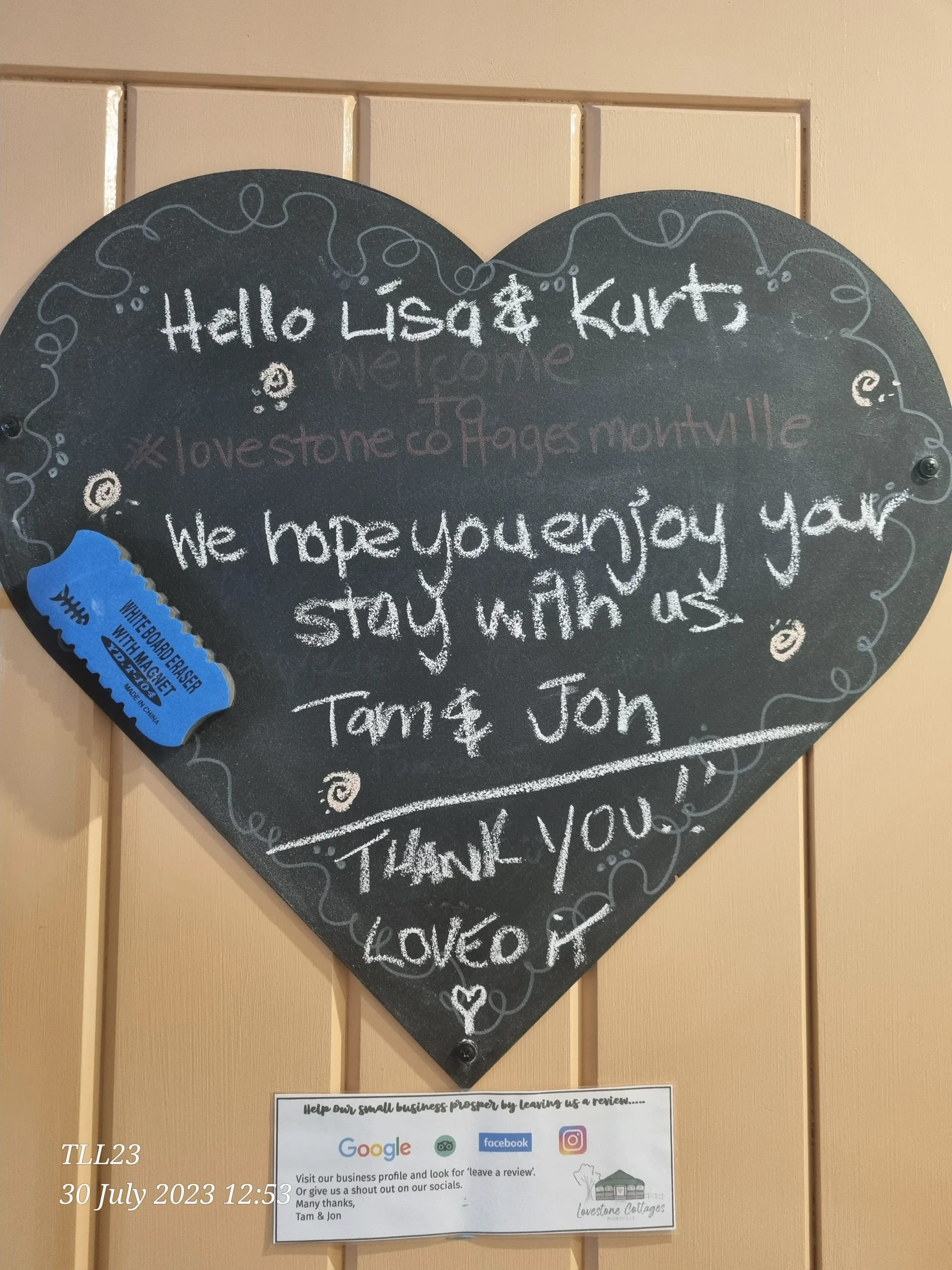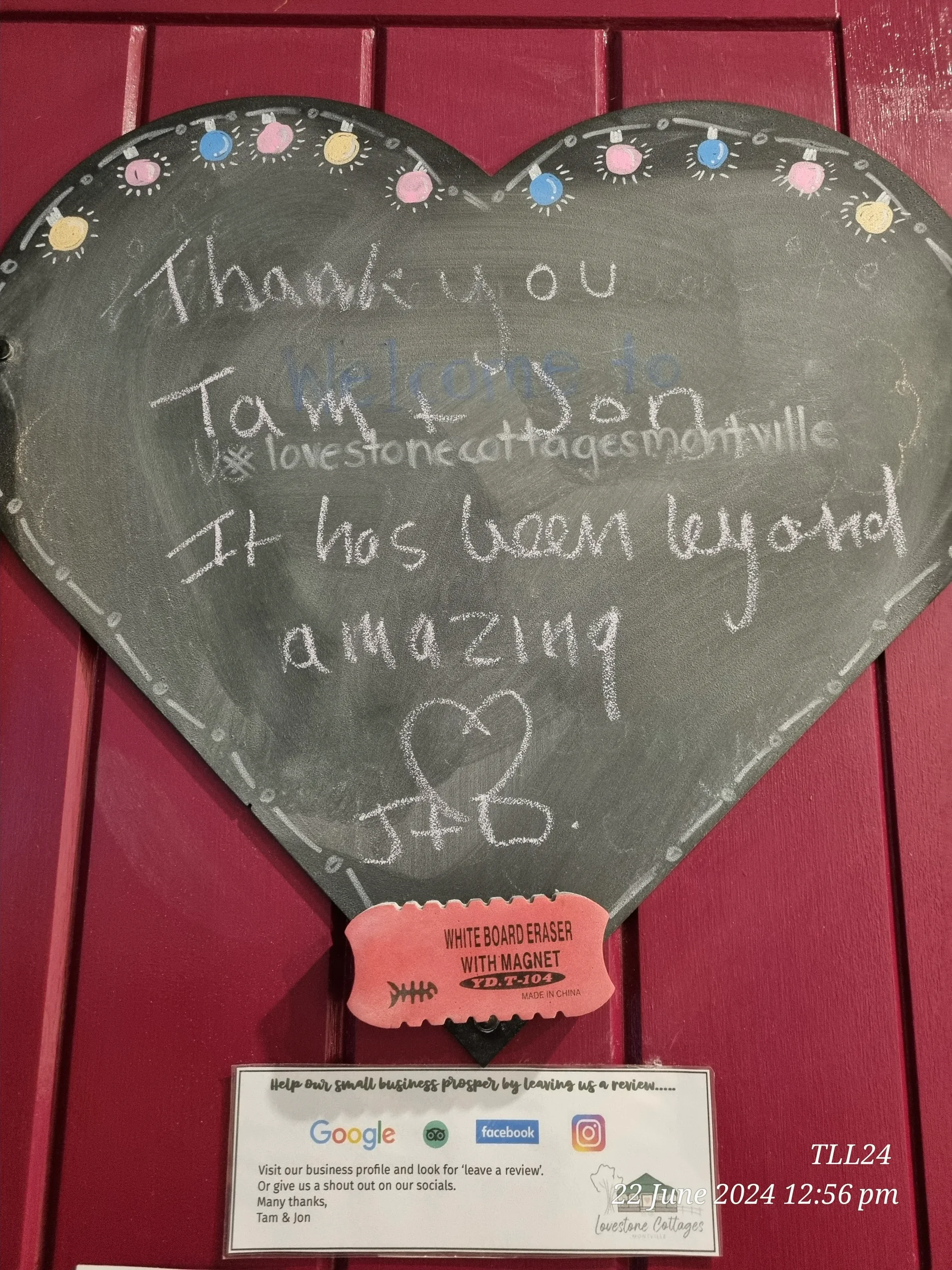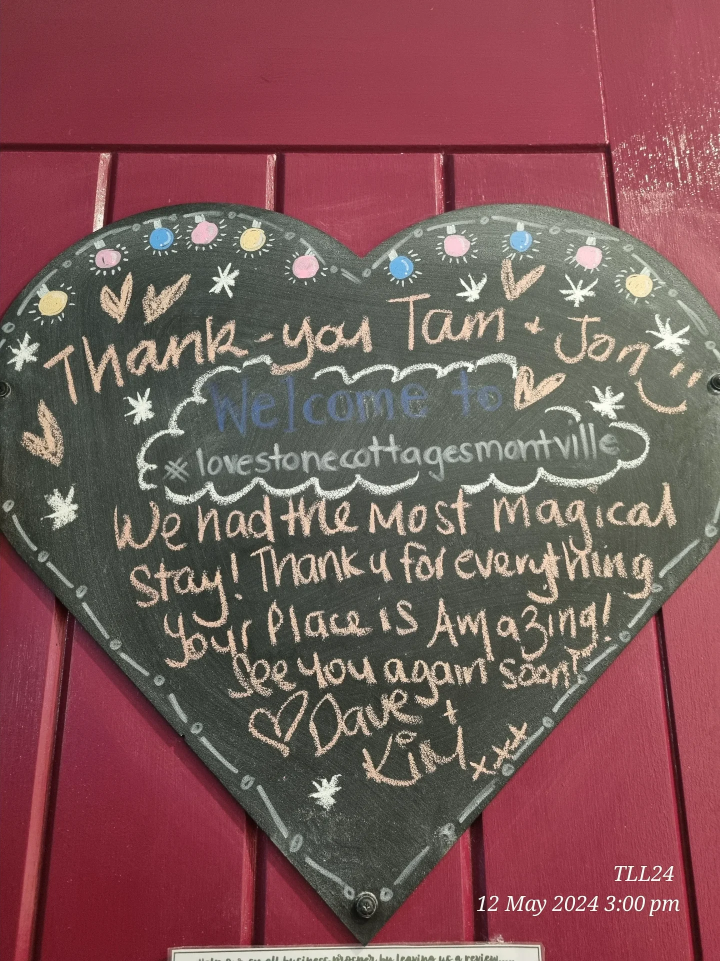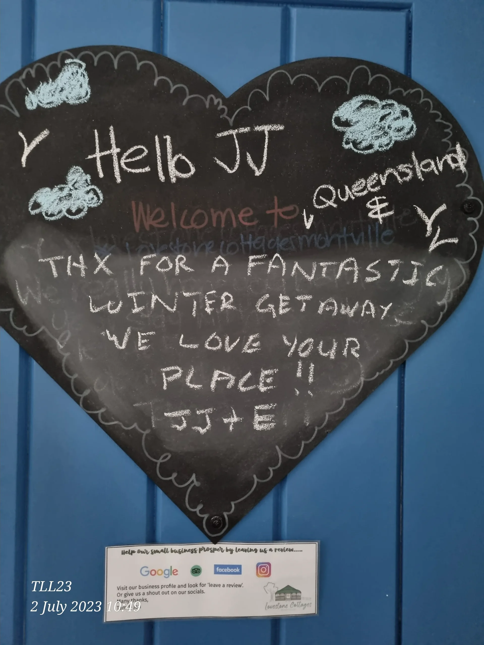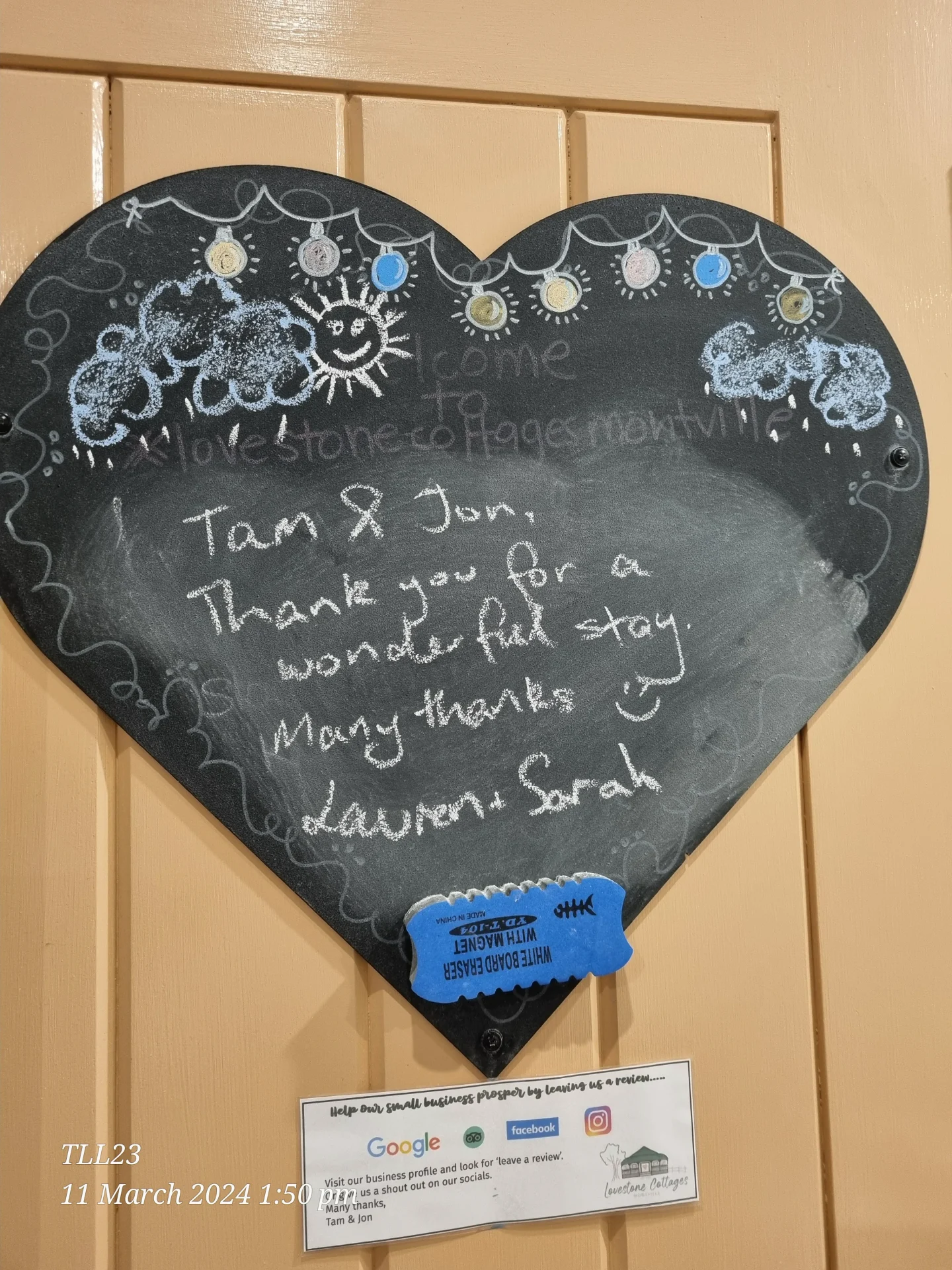 Whilst we love 5 Star reviews many of our guests also like to leave us a LoveNote.